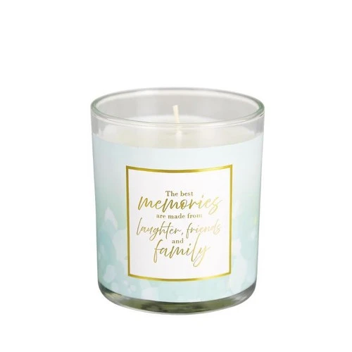 Soy Based scented candle inside of frosted glass with metallic gold detailing and a wooden lid. Beautifully packaged inside a gift box with more gold foil detailing – 96 mm high