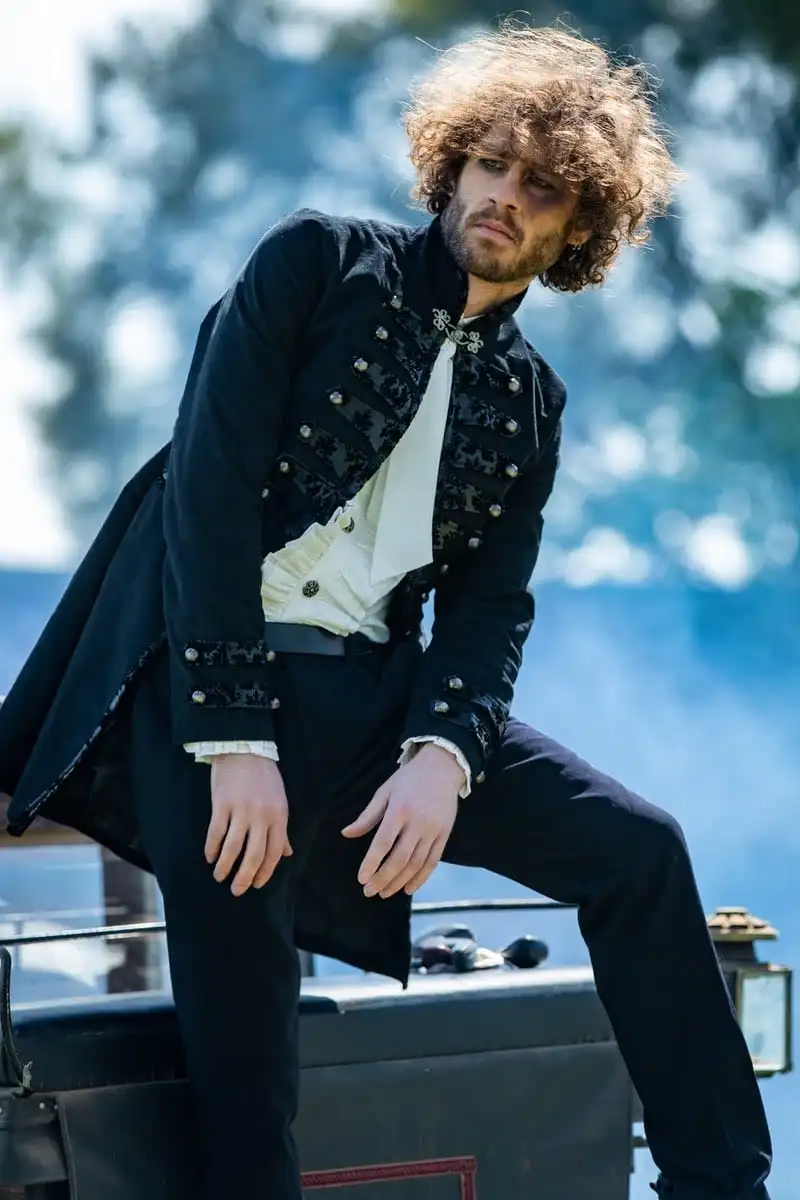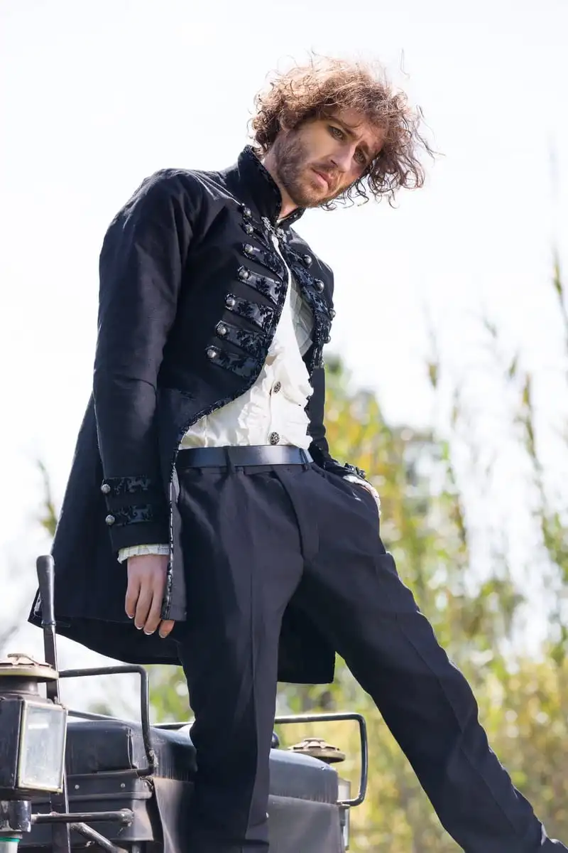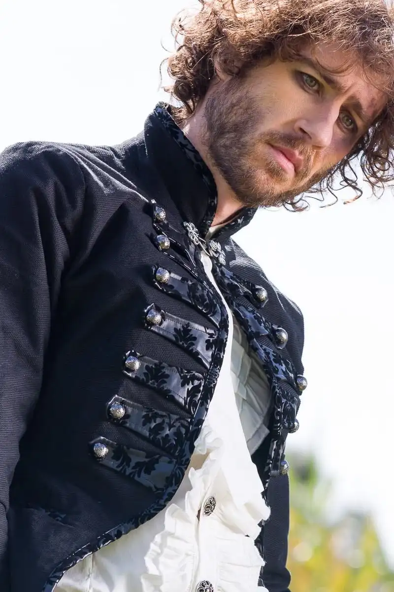 Black pirate jacket with subtle gothic victorian styling – great for weddings, formals, festivals and any special event.
