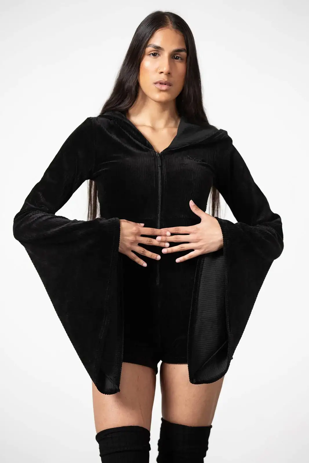 – Soft, ribbed velour, stretch fabric.
