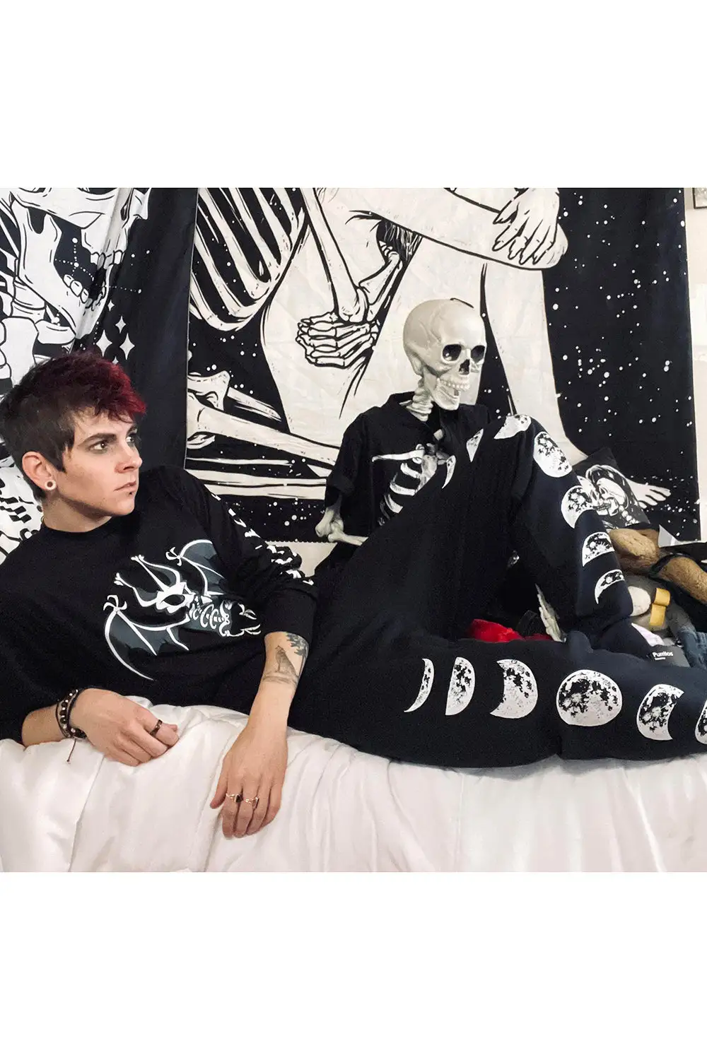 Be your battiest self with everyone’s favorite bloodsucker… Batty Bones! Spread your skeletal wings and take to the midnight sky with Batty Bones across yer chest. With skeletal wings and taloned claws, Batty Bones is creepy, kooky, and absolutely spooky.Â